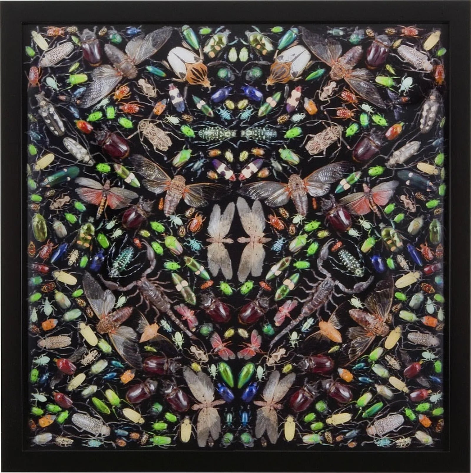 Inferno is a lenticular print produced in 2016, this digital print on PETG plastic depicts a delicate arrangement of insects in a square shape with a black border. The print is extremely colourful as the various insects are all different shapes, sizes and colours. The insects in the print seem beautiful, despite the many negative associations these tiny creatures carry. Hirst in fact, thought insects were extremely beautiful, arguing that they retained an iridescent beauty, even in death.