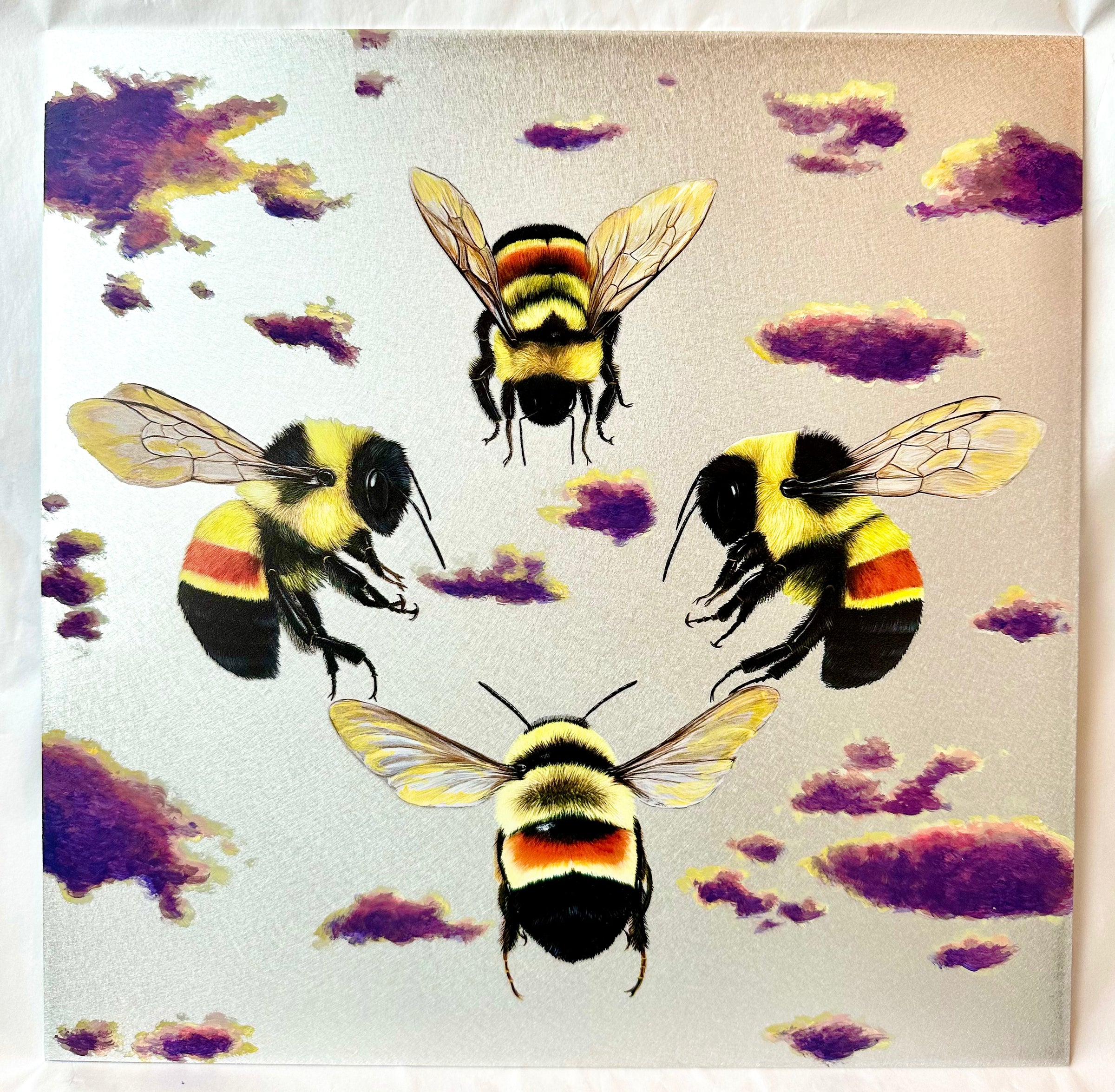 Aluminium brushed metal print with hand painted sunset clouds