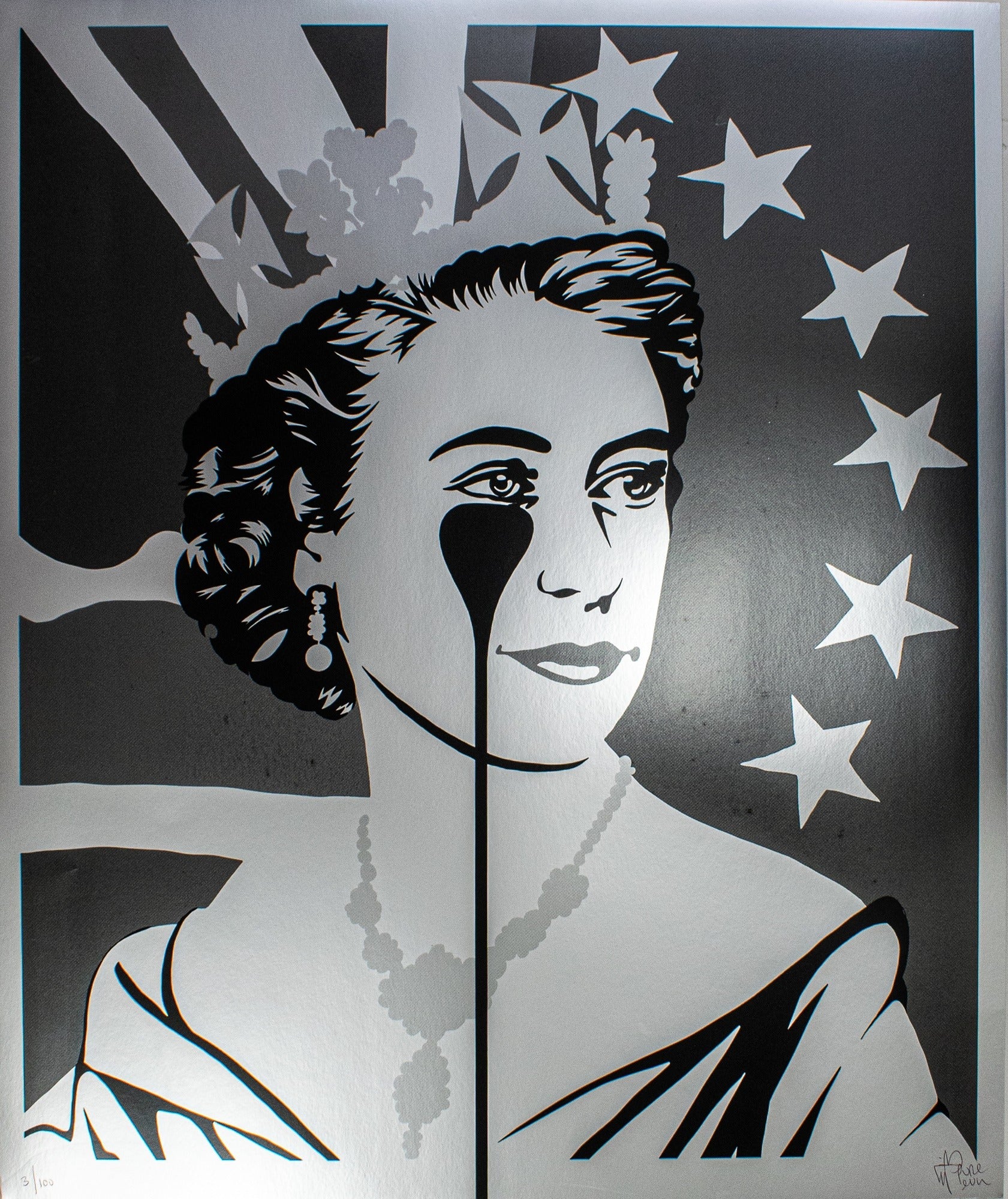 Screenprint with black ink on silver metallic paper
