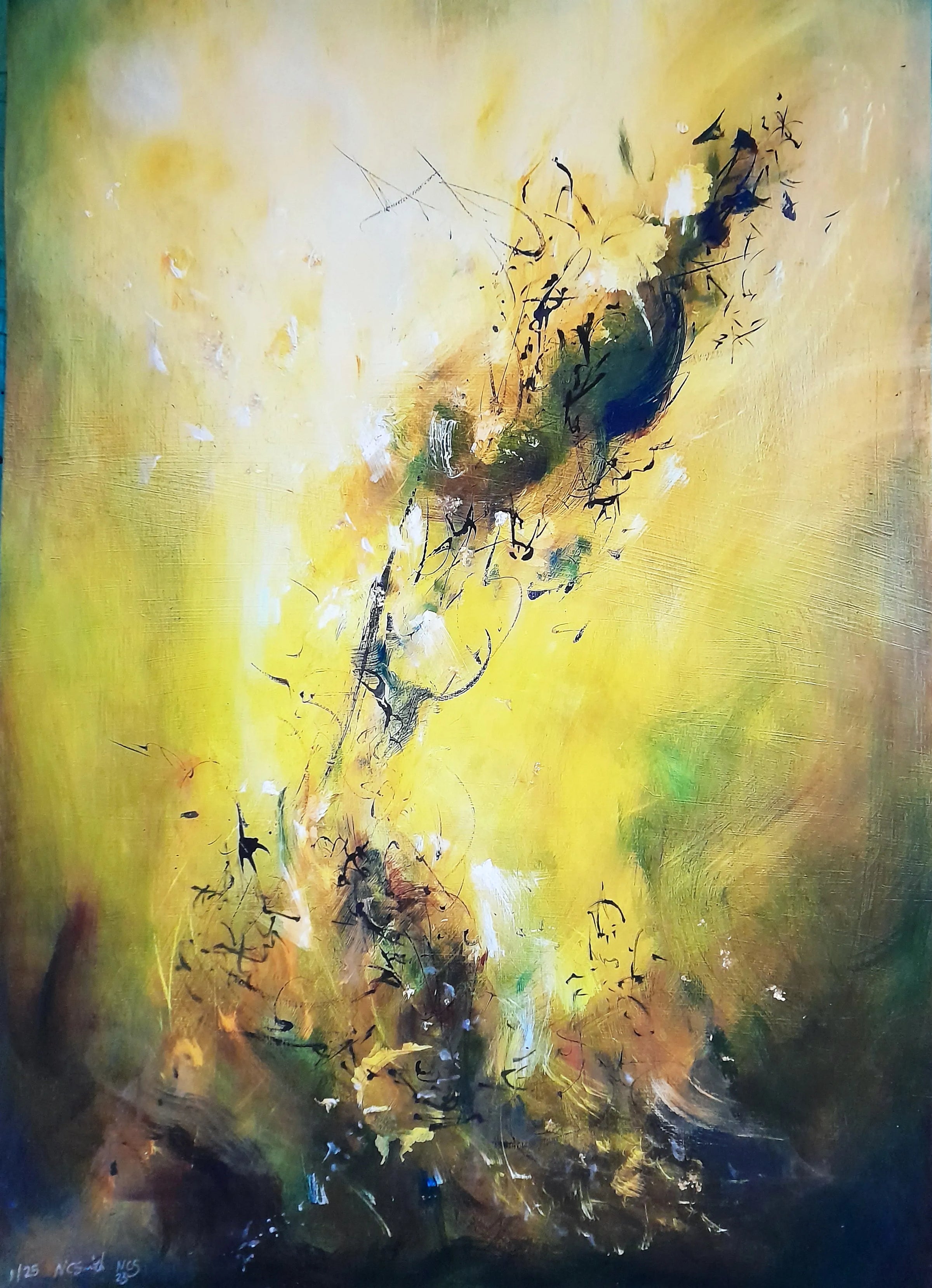 Giclee print on Hahnmuhle paper with hand-finished elements including ink, watercolour and gold leaf