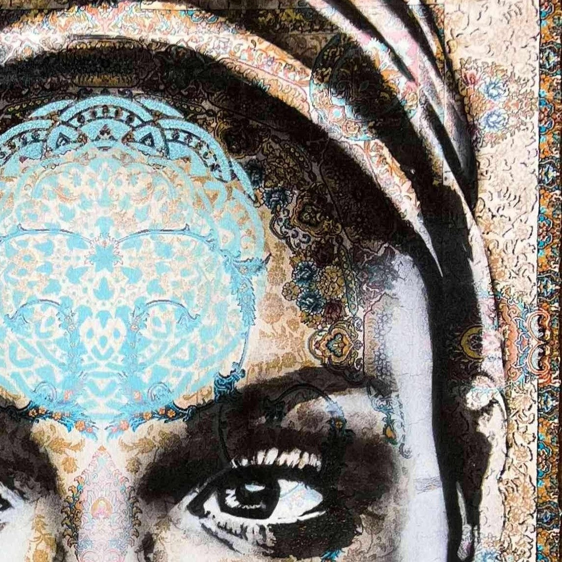 Silkscreen and Giclee print on Canson Rag Photographique, hand-finished with spray paint