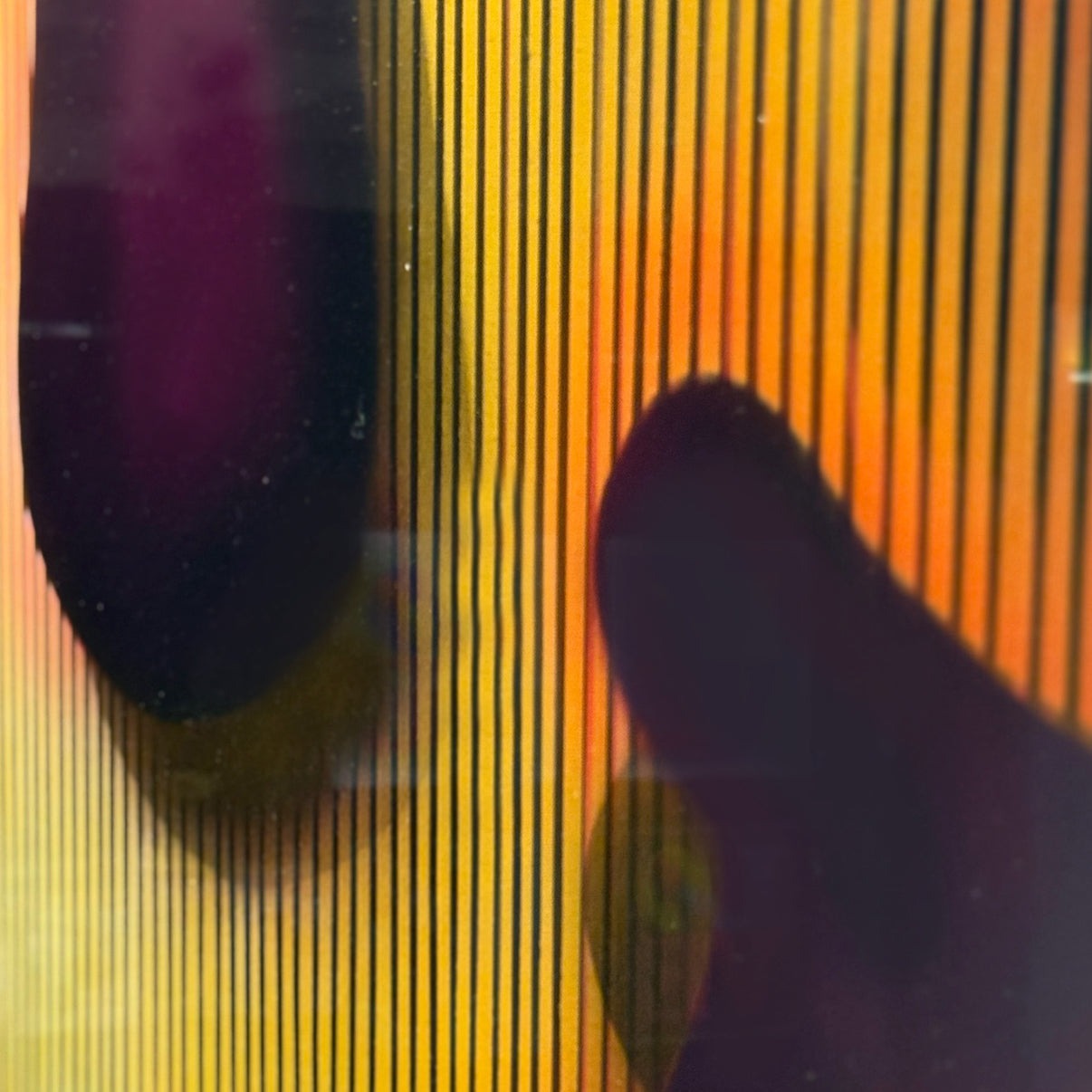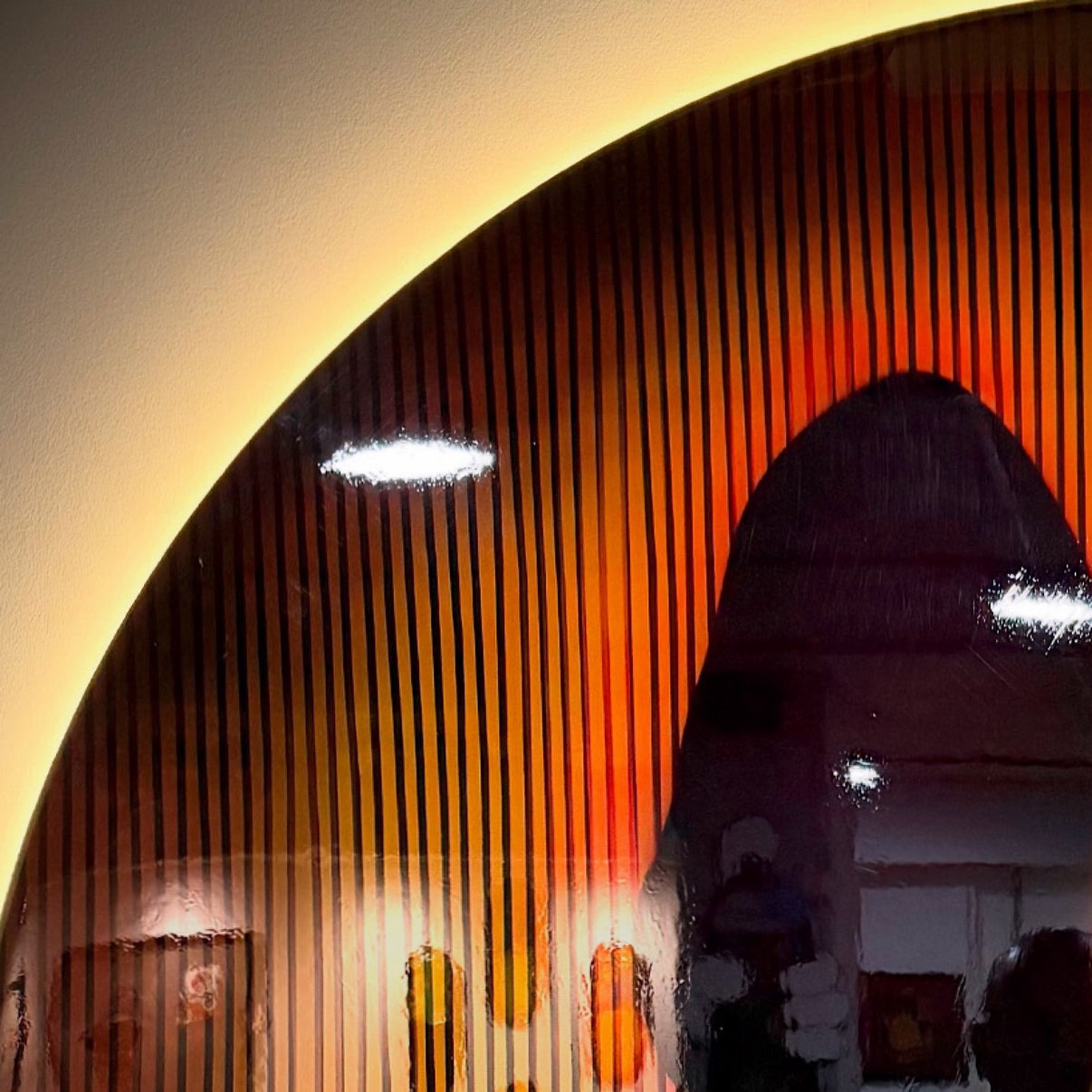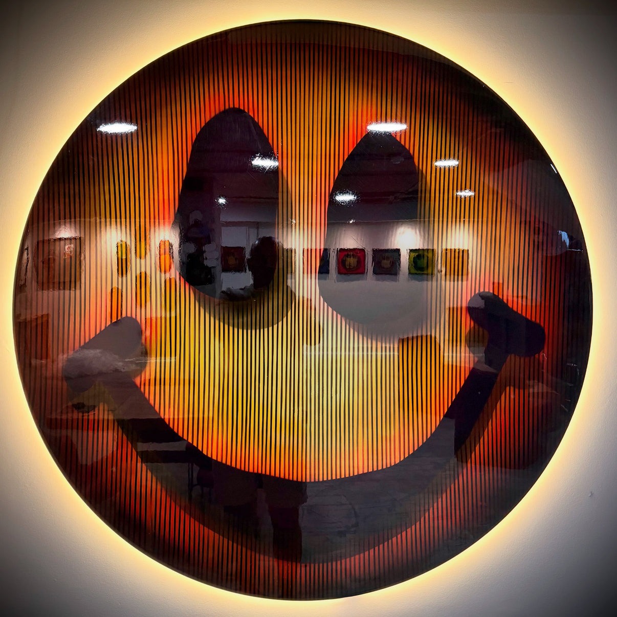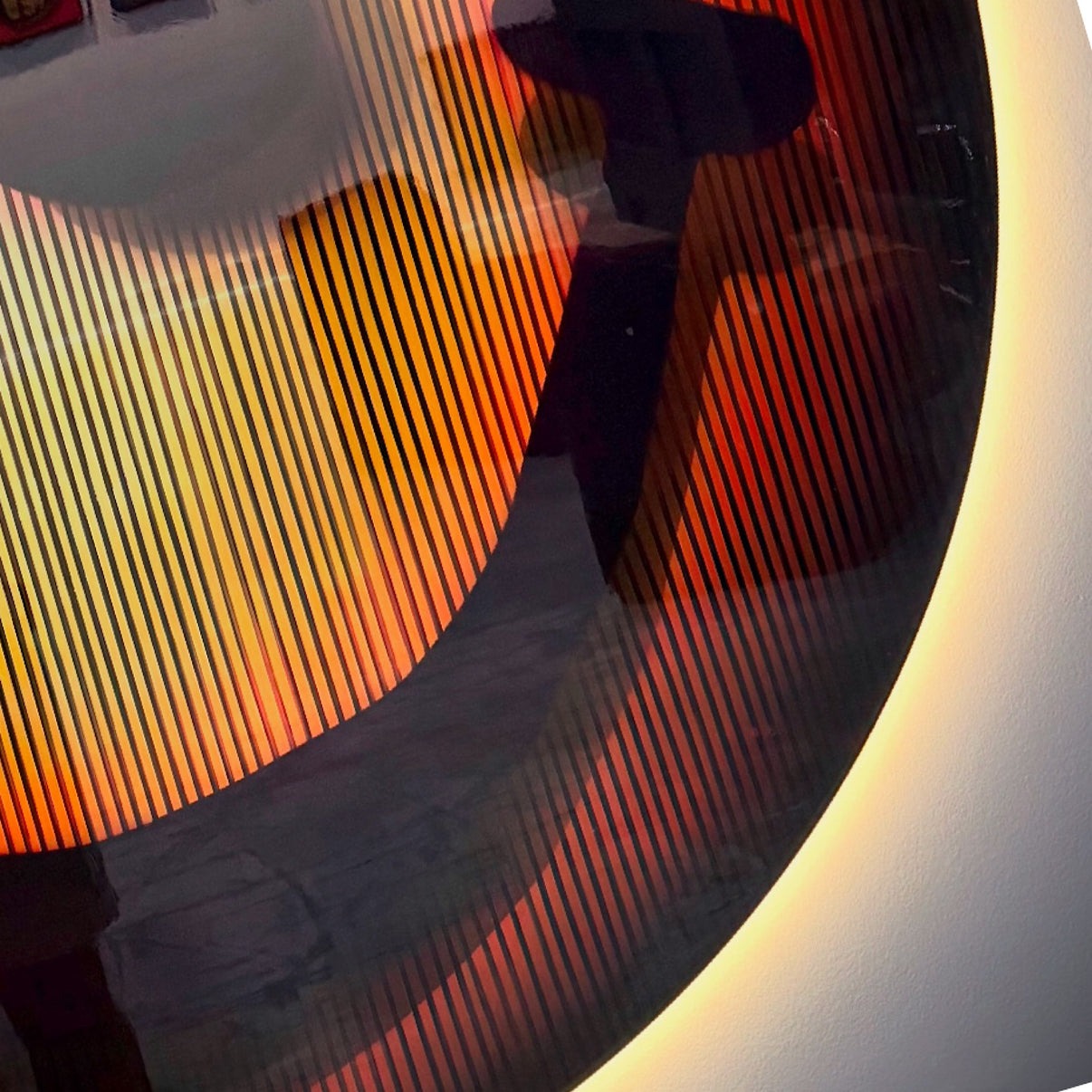 Several coats of resin are built up to a glass finish. Multi-layer, mixed medium. LED lit